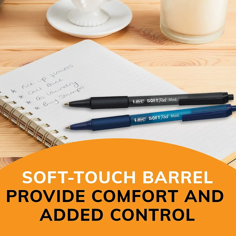- One 36-count pack of BIC Soft Feel Assorted Colors Retractable Ballpoint Pens