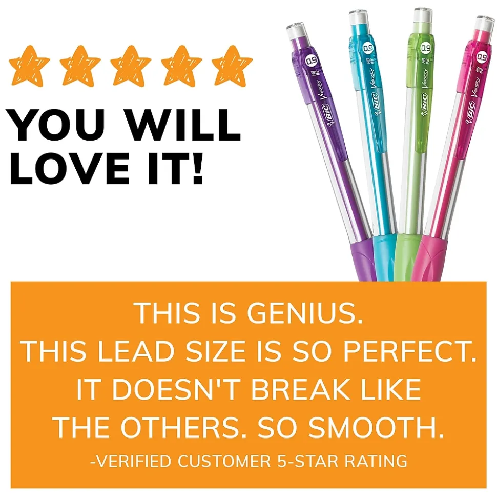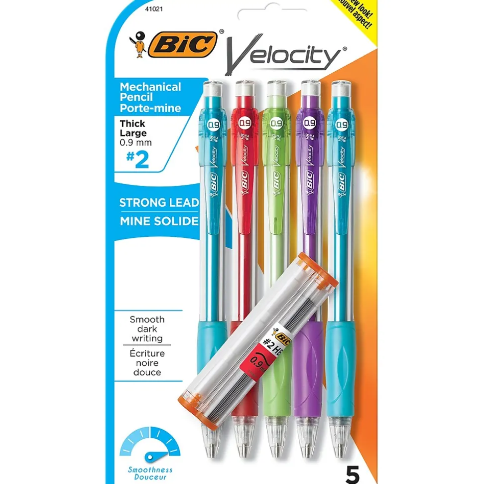 BIC Velocity Mechanical Pencil, 0.9mm, #2 Hard Lead, 5/Pack (MVP51-BLK)