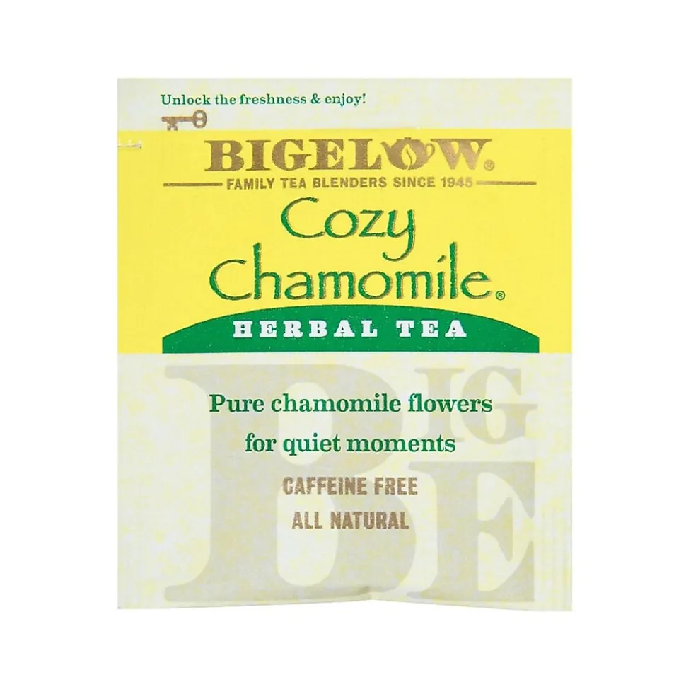 Stir up a more mellow morning drink with this herbal tea. The use of whole flowers provides a sweeter, rounder flavor, and the tea is naturally caffeine-free for a mellow drinking experience. Individually wrapped for convenience, Bigelow chamomile tea bags come in a handy box that doubles as a dispenser.