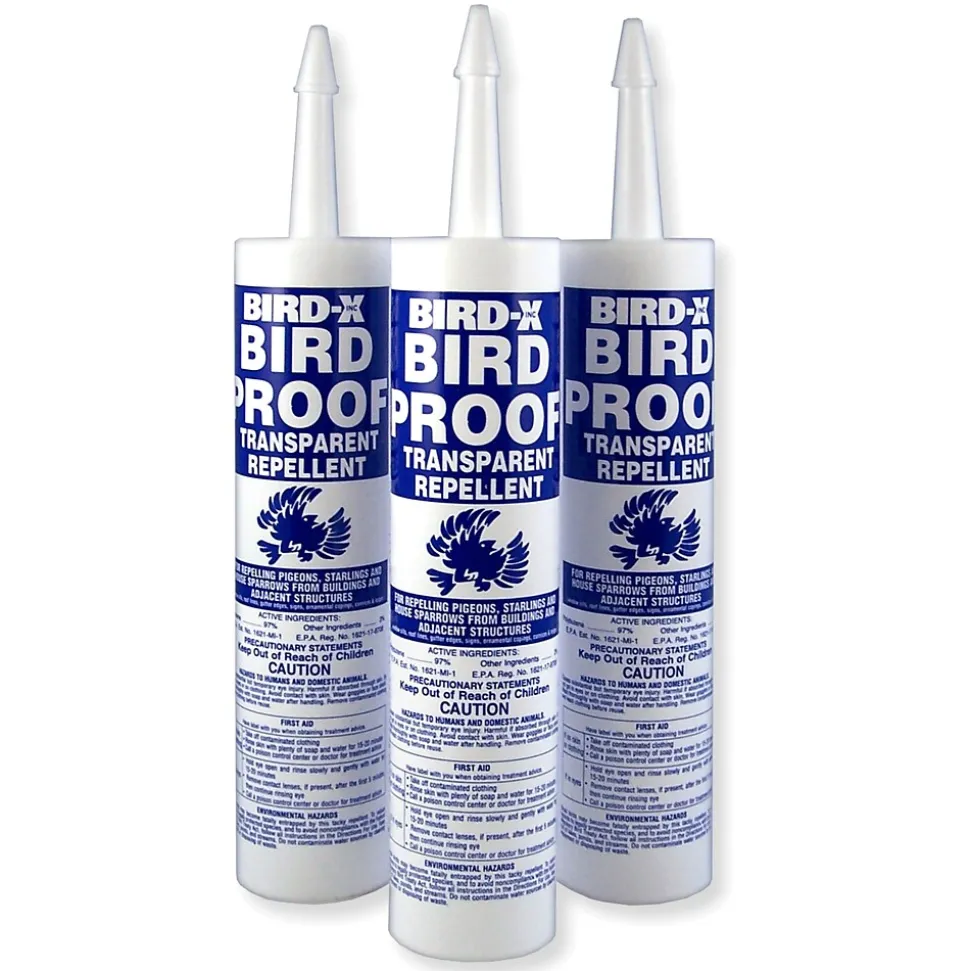 Bird Proof Gel is a safe bird repellent for ledges, window sills, gutters and beams to keep birds from roosting or landing. Discreet and low-profile, this non-toxic formula makes a surface sticky and uncomfortable to birds. The gel is easy to apply with a standard caulking gun. It can be used in any weather and over time, the birds do not return to the treated surfaces.