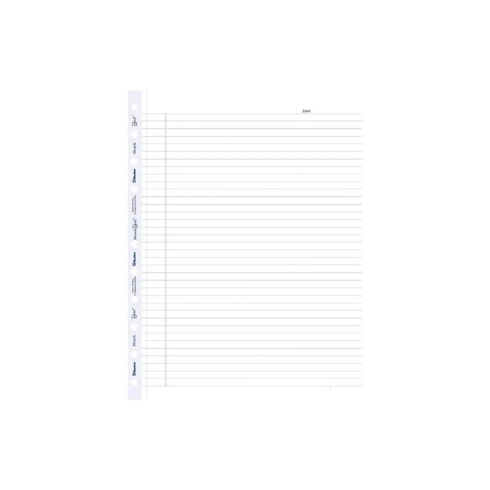 - Micro-perforated pages with blue margin