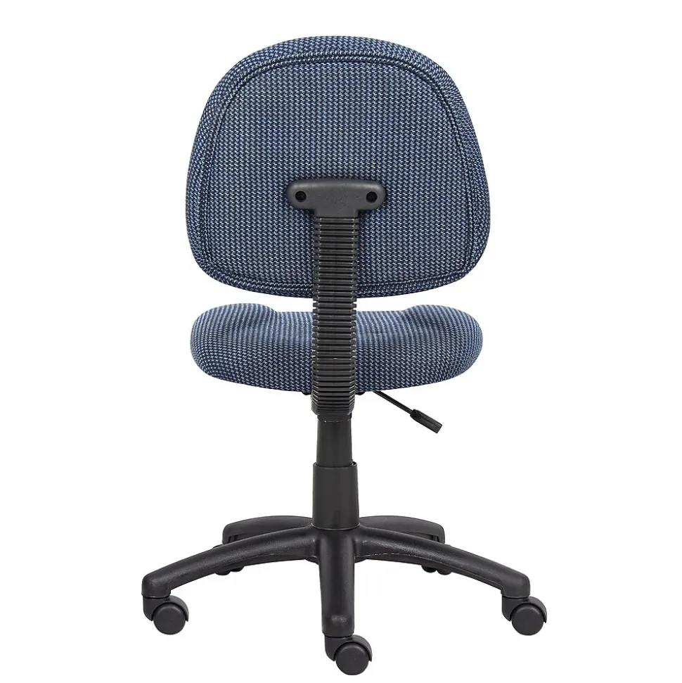 Provide a more comfortable seating experience for your staff with this Boss Perfect Posture office chair. Contoured, padded cushions offer softness plus support for all-day comfort, while the durable tweed upholstery stands up to frequent wear and tear. A five-star base and rolling casters make moving this chair from room to room simple. Adjust the seat height up or down to match your desk setup and use the swivel seat to transition from your computer to your filing cabinet or credenza. With its simple silhouette and neutral black color, this Boss Perfect Posture office chair brings understated style to your workplace.