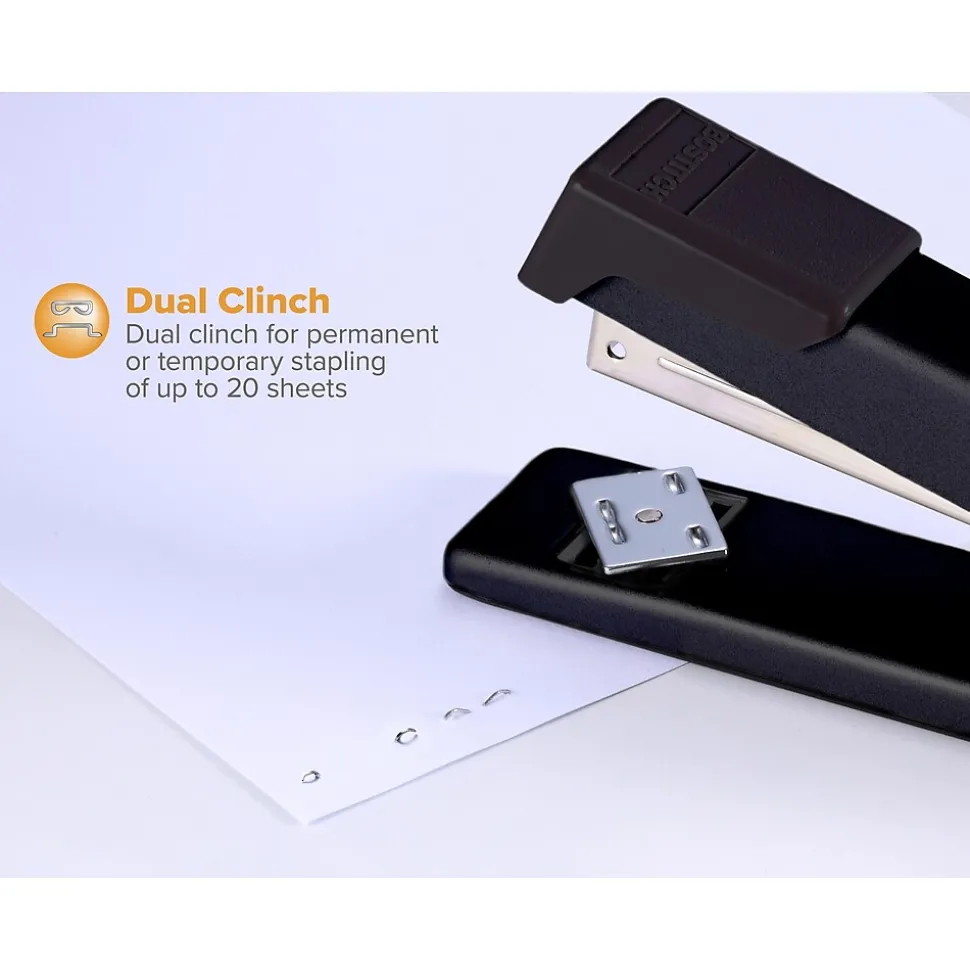Classic all-metal style with superior reliable performance. A reliable favorite, this traditional-style stapler features a durable all-metal construction for a lifetime of use. Conveniently designed to open for bulletin board tacking, and adjust between temporary or standard stapling. Staples up to 20 sheets of paper. Uses standard staples.