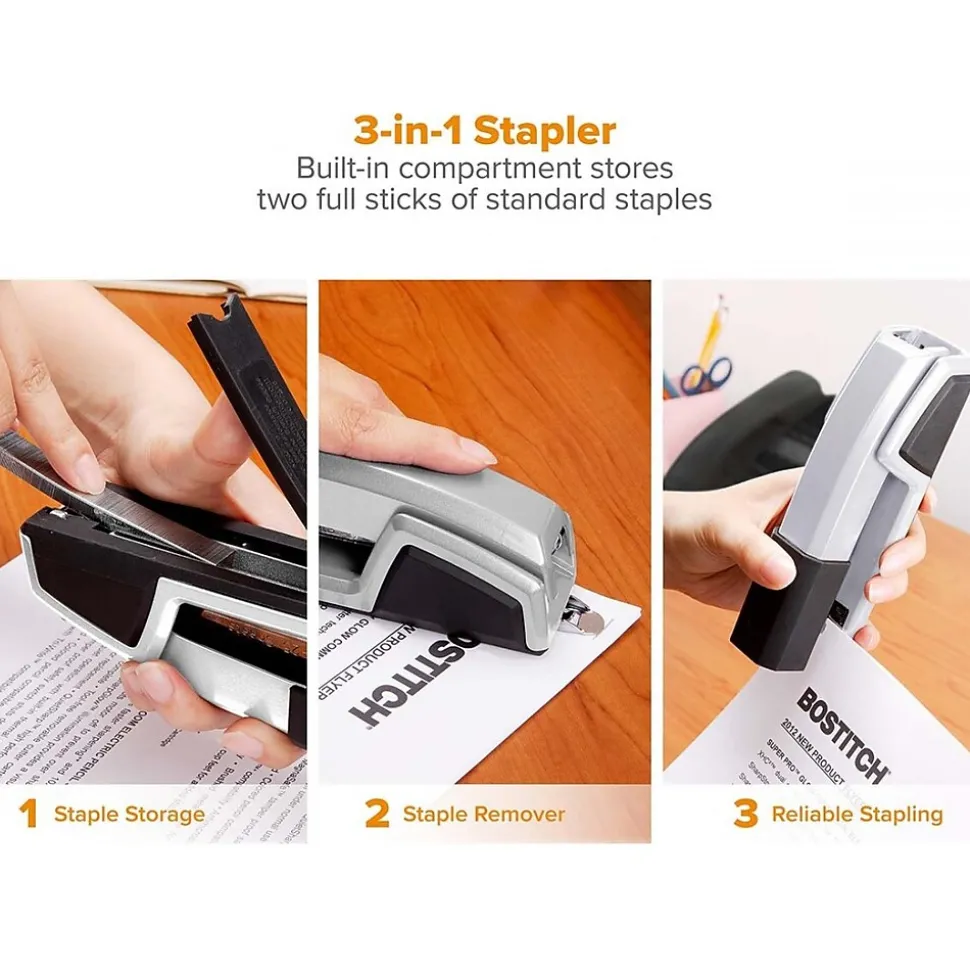 Premium performance without sacrificing aesthetics – the Epic is true to its name. The stapler conveniently has: a swing-out staple EZ Remover for quick fixes, a hidden Staple Store slot to keep extra staples handy, and ability to open 180-degrees for bulletin board tacking and crafting. Made of durable die-cast metal with a soft rubber grip and base, this office necessity is made for comfortable, lasting use. No-Jam technology prevents staple jams for smooth stapling of up to 25 sheets of paper (25% more than standard staplers).