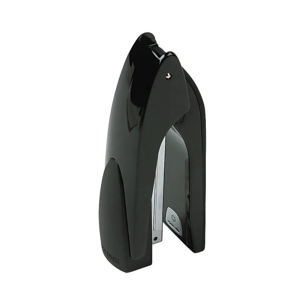 Premium upright stapler is a fusion of high performance, durability and professional style. Iconic design allows it to stand up or lie flat, making it ideal of expansive executive desktops or tight cube environments. High-quality die-cast construction means it will easily and consistently staple up to 20 sheets. The curved ergonomic shape and soft rubber comfort grip make this stapler superior handheld use. Executive Stand-Up Stapler holds a full-strip of staples and uses standard staples. Convenient window alerts you when you need to reload the stapler.