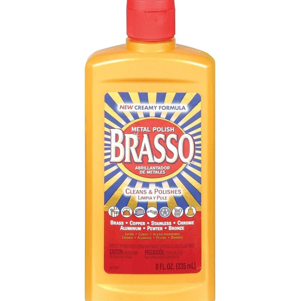 Brasso Metal Polish quality has been around over 100 years. It cleans & polishes a variety of metals, providing a long-lasting smooth, polished surface and brilliant shine.It can be used on: brass, copper, stainless, chrome, aluminum, pewter, and bronze. Brasso is easy to use!Just shake well, soak a clean cloth/sponge with Brasso and apply to metal. Brasso can help to polish: car rims, faucets, metal kitchenware, metal furniture, brass door knobs & locks, stainless refrigerators, ovens, toasters & dishwashers.Do not use on silver, lacquered, painted or antique-finished surfaces.