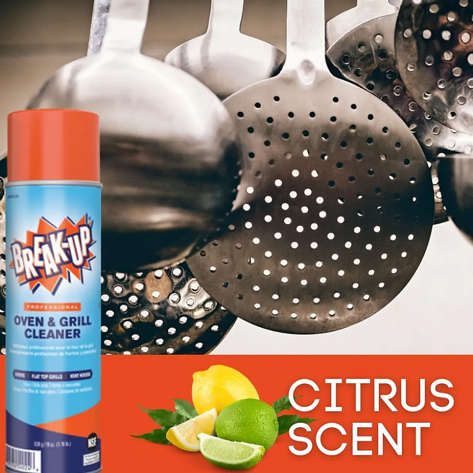 Break-UpĀ® Professional Oven & Grill Cleaner breaks down tough, baked-on grease and grime on contact, even on cold surfaces