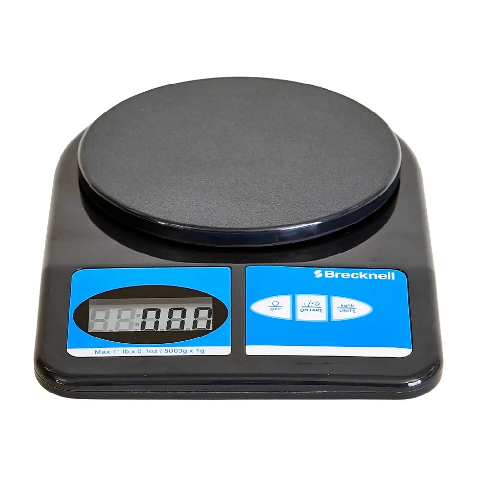 Weigh packages accurately with this digital scale that features a round weighing platter to facilitate balanced placement. The easy-to-read LCD screen on this digital scale displays two modes, to create weight calculations for different countries. A tare key on this digital scale is ideal for making allowances for shipping containers. Boasting small design, this plastic-molded Brecknell digital scale is perfect for weighing small packages in busy environments.