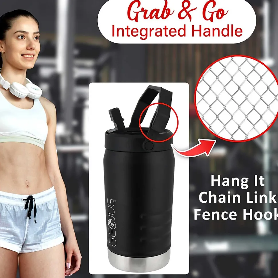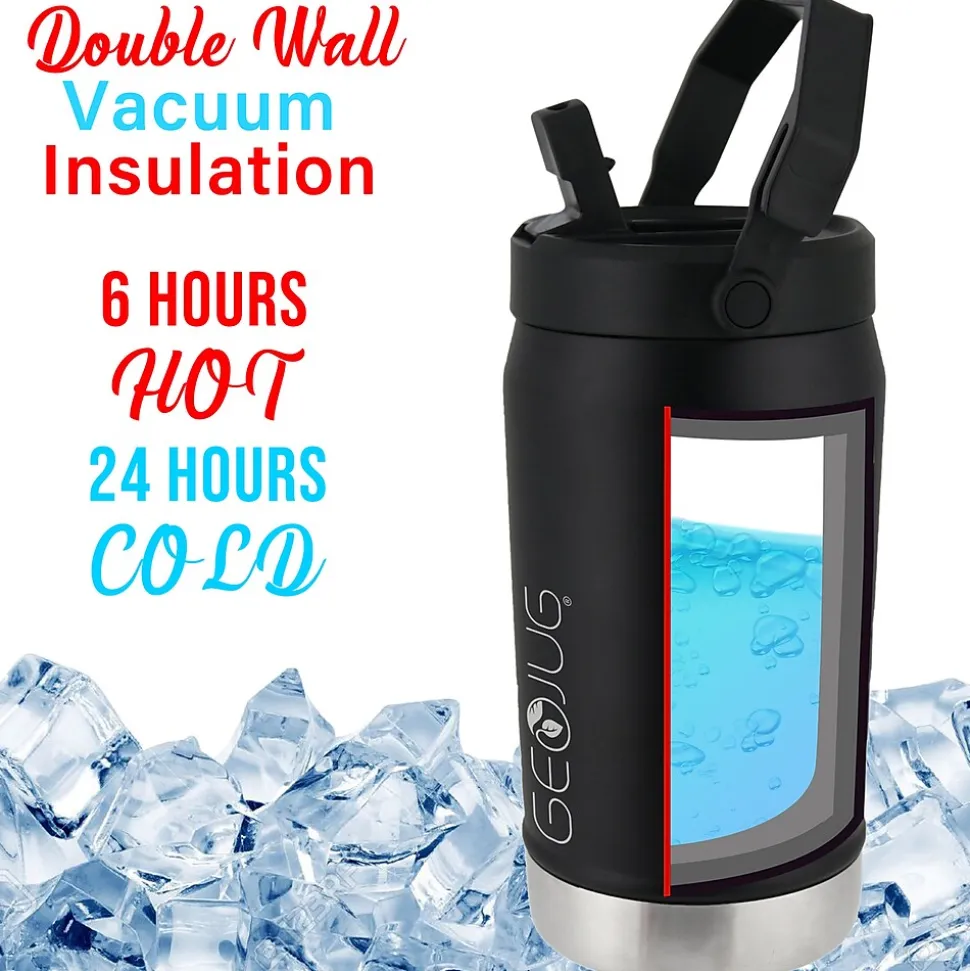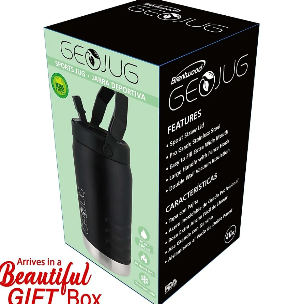 Use the Brentwood® Geojug Stainless Steel Vacuum Insulated Sports Water Jug to keep your favorite beverages hot up to 10 hours and cold up to 24 hours with no condensation. Always enjoy the pure taste of your drink thanks to tasteless and odorless pro grade stainless steel construction. An extra wide mouth is ideal for quick filling and easy cleaning. The thin and durable powder coat finish insures a slip free grip. It includes a uniquely designed spout straw lid with built-in, extra-large carry handle. Conveniently hang the sports jug on a chain link fence using the integrated fence hook on the handle. Stand out with this great insulated water bottle.