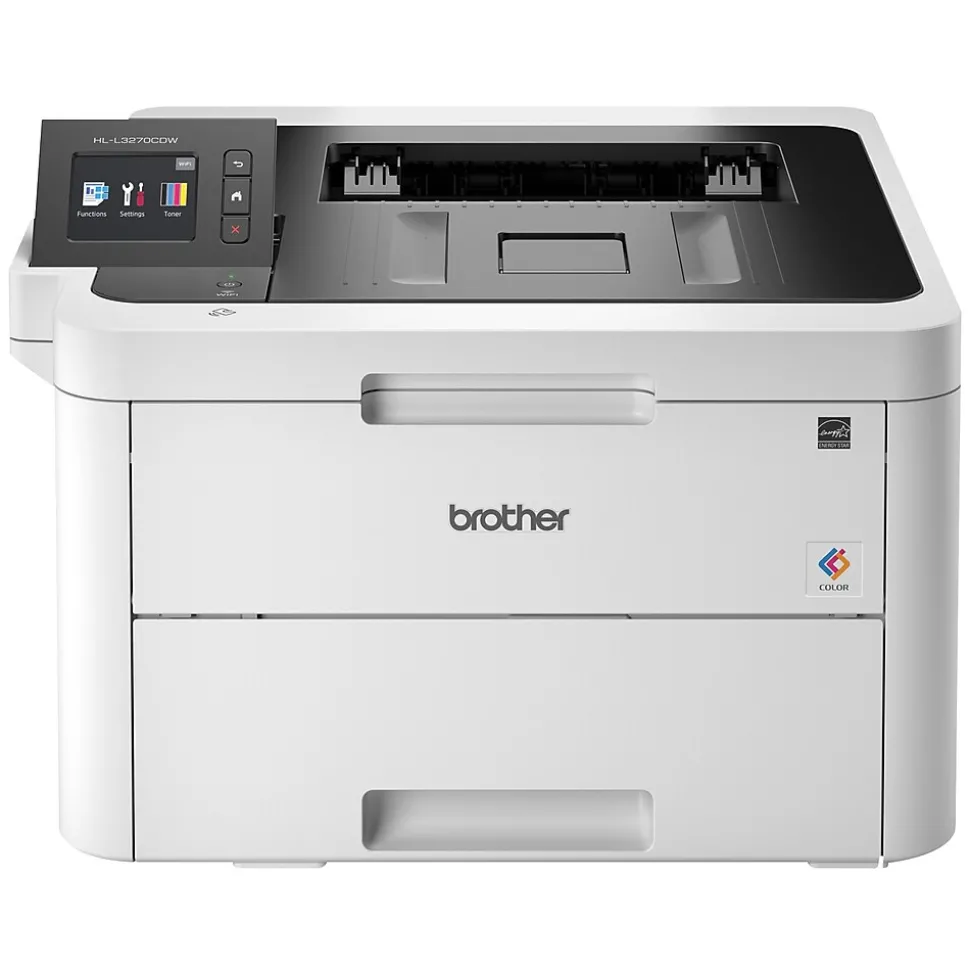 A great option for your busy home or small office, the reliable Brother digital color printer offers quick print speeds of up to 25 pages per minute and flexible connectivity options, including built-in wireless and USB interfaces, and prints wirelessly from mobile devices. Its manual feed slot accommodates various printing needs so it can handle a variety of paper types and sizes including bond paper, envelopes, and more. The 250-sheet capacity adjustable paper tray helps improve efficiency with fewer refills and handles letter- or legal-size papers, while automatic two-sided printing helps save paper and lower printing costs. Save time by creating custom shortcuts on the 2.7″ color touchscreen which also lets you print directly from popular cloud apps, including Dropbox, Google Drive, Evernote, OneNote, and more.