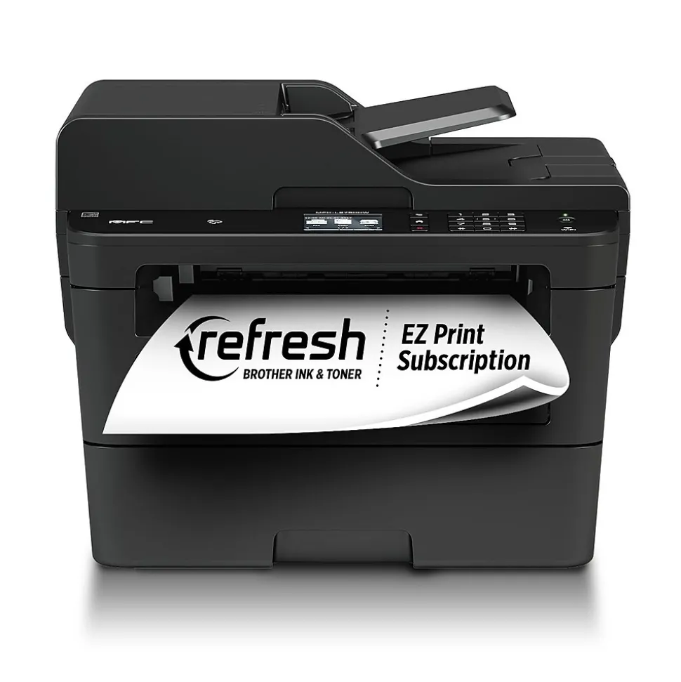 The Brother MFC-L2750DW XL Extended Print monochrome laser printer comes with up to 2 years of toner in-box. Eliminate the empty toner cartridge panic during important print jobs with approximately 7,500 pages included. The up to 50-sheet automatic document feeder helps save time with single-pass duplex (2-sided) copying and scanning, while offering multi-page copy, scan & fax. Its class leading print speeds of up to 36 pages per minute provide increased efficiency. Wireless mobile device printing and “touch to connect” printing and scanning with NFC deliver added convenience. You can print-from and scan-to popular Cloud services directly from the 2.7” color touchscreen and help save time by creating custom shortcuts for your most used features. Comes with a 2-year limited warranty and free online, call, or live chat support for the life of your printer.