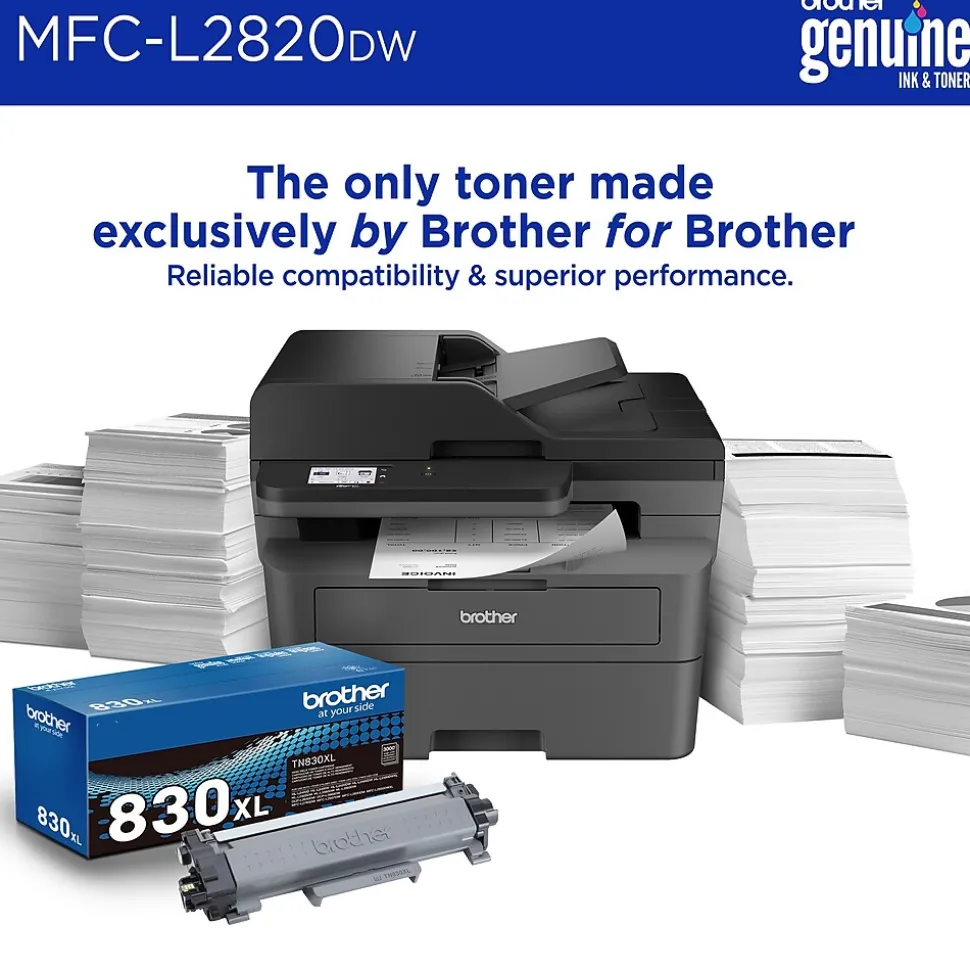 - RELIABLE RESULTS WITH BROTHER GENUINE TONER. When it’s time to replace your toner, be sure to choose Brother Genuine TN830 Standard or TN830XL High Yield. And with Refresh EZ Print Subscription Service, you’ll never worry about running out of toner and you’ll enjoy savings of up to 50%(4) on Brother Genuine Toner. Get started with Refresh today with a Free Trial.(5)