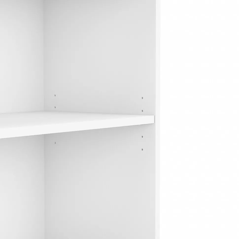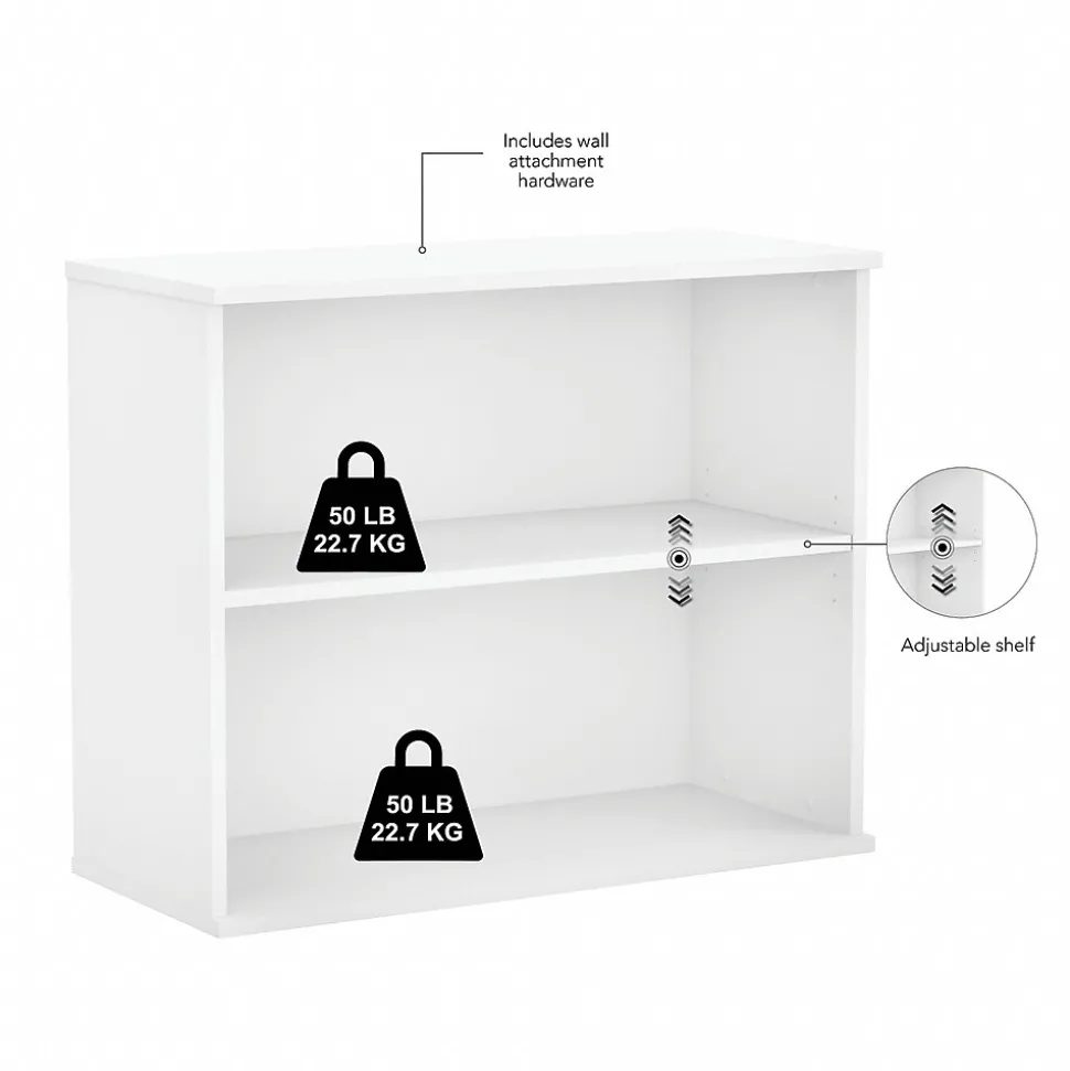 Keep work materials organized and accessible while conveying a classic, professional appearance with the Bush Business Furniture small two-shelf bookcase. Use the shelves to store books, reference materials, and supplies, or give your office a personal touch with pictures and decorations. One shelf is fixed for stability, and the other can be raised or lowered to accommodate items of various sizes. Each shelf supports up to 50 lbs., so storing larger materials is no problem. The efficient design and commercial-quality construction of this low bookcase make it an ideal storage and display solution for home and professional offices alike. A stable design and included wall attachment hardware provide peace of mind in every work environment. This small bookcase has been tested to meet ANSI/BIFMA quality standards for safety and performance and is backed by a 10-year manufacturer warranty.