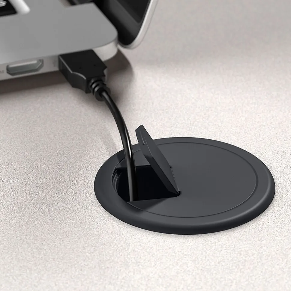 - Desktop includes wire management grommets to neatly organize cords and cables