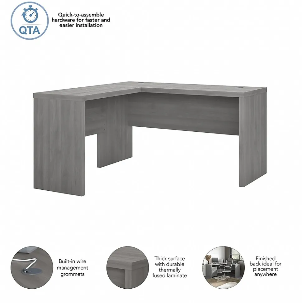 The Bush Business Furniture Echo L Shaped Desk offers an elegant, functional design to inspire today’s professional. Place the Desk in a corner to save space in compact areas or make use of the fully finished back to take a prominent position in the middle of the room. Wide lines and a thick surface create a strong presence while a thermally fused laminate finish protects the office desk throughout years of everyday use. Spread out on the spacious L Shaped surface with your computer, paperwork or any other tasks of the day. Attach the 36W Return to either side of the 60W Desk to form a left or right-handed layout. From Bush Business Furniture, Echo comes with a 3 Year Manufacturer’s Warranty and meets ANSI/BIFMA quality standards for safety and performance. Browse our full line of contemporary furniture to create an office set you’ll love for years to come.