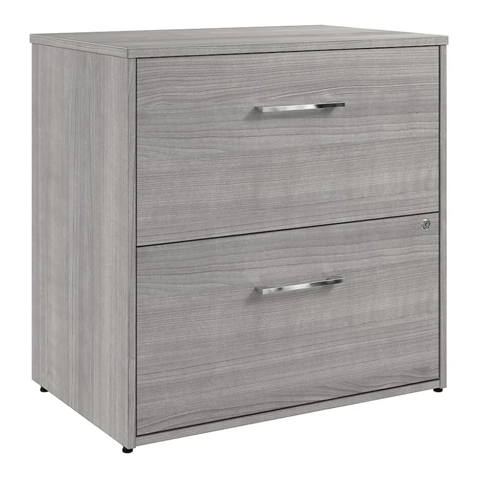 The Bush Business Furniture Hustle 2 Drawer Lateral File Cabinet provides the form and function needed to support your entrepreneurial spirit without breaking the bank. An ideal choice for small to medium-size businesses and home offices alike, the filing cabinet is a great way to keep letter, legal, and A4-size paperwork organized and accessible. Drawers open on smooth full-extension ball bearing slides for an easy reach to contents and are designed to extend one at a time for safety and stability. A single lock secures both drawers to safeguard sensitive documents as well as valuable items. Each drawer holds up to 60 pounds of materials. This 2 drawer file cabinet with lock has been meticulously designed and tested to meet or exceed ANSI/BIFMA standards for safety, durability, and performance and is backed by a 10 Year Manufacturer’s Warranty. American made with U.S. and imported parts.