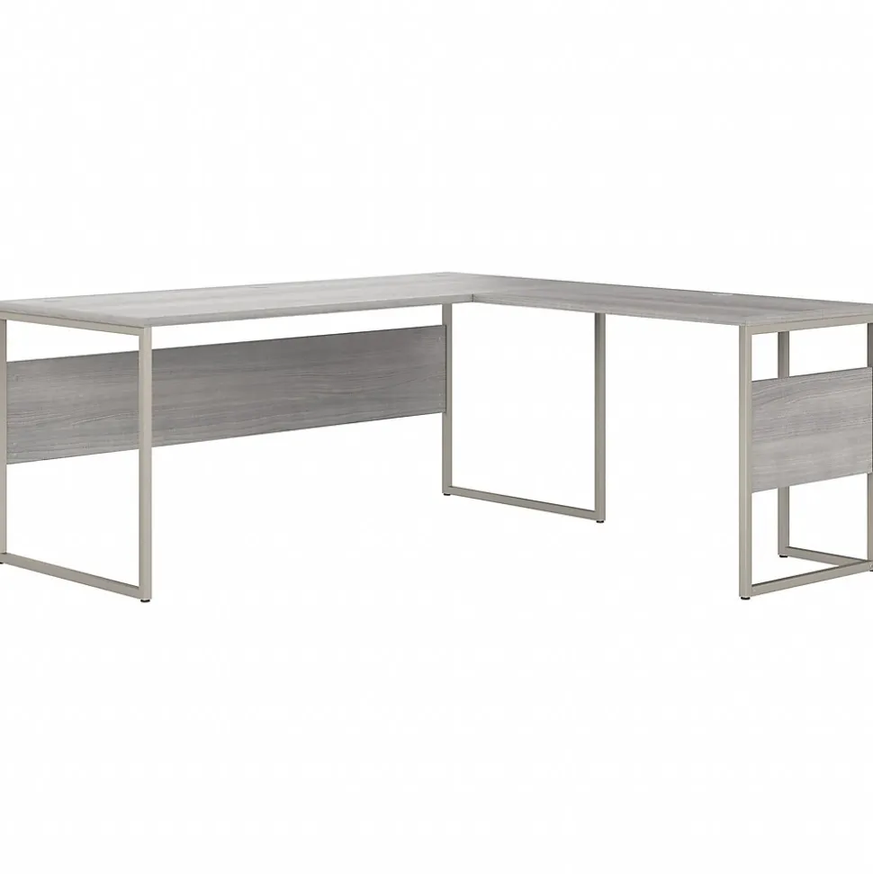 The Bush Business Furniture Hybrid L-shaped table desk blends a durable work surface with sturdy metal legs to offer a stylish, long-lasting solution for the modern professional. Tackle your next project or assignment with a computer, books, and more on a desktop that supports up to 200 lbs. Four built-in wire management grommets keep cords and cables in order, so your work area remains free from unnecessary clutter. The corner desk’s open leg design and finished privacy panel allows it to look great facing any direction in a home or professional office environment. This modern computer desk has been meticulously tested to meet or exceed the ANSI/BIFMA standards for safety, durability, and performance and is backed by a 10-year manufacturer warranty. American-made with US and imported parts.