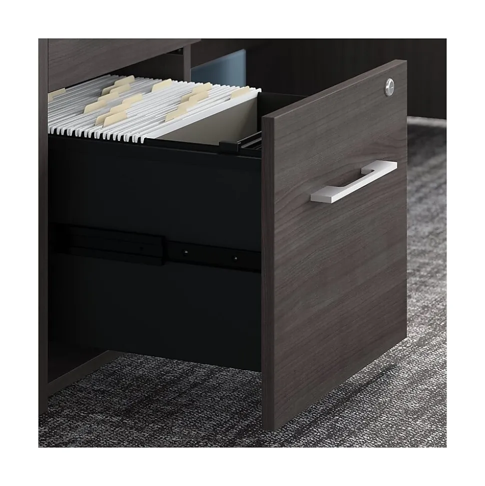 - File drawers open on smooth full-extension ball bearing slides for easy access to legal, letter and A4-size paperwork