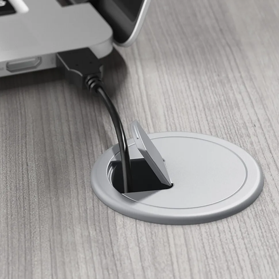 - Surface includes two built-in wire management grommets to keep cords and cables in order