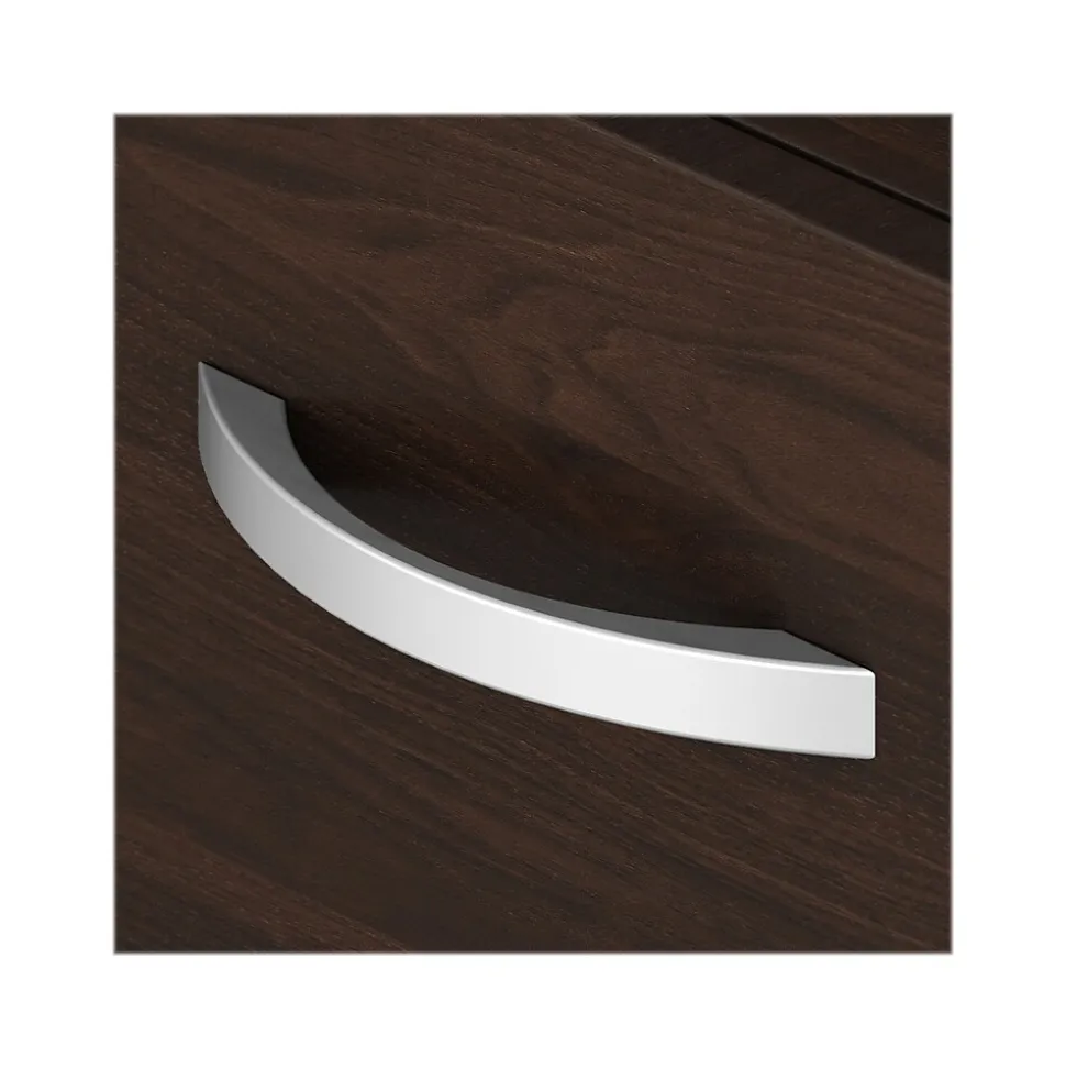 The Bush Business Furniture Studio C two-drawer mobile file cabinet rolls with you throughout your office or remains in place as needed on any surface. You’ll have your letter-, legal-, and A4-size paperwork organized in no time as the mobile file cabinet ships fully assembled. Both drawers open on full-extension ball bearing slides, making it easy to reach files at the back. Dual-wheeled, hooded casters keep the cabinet moving on your office floor or carpet, and a lock secures both drawers to keep paperwork private. Eye-catching brushed nickel drawer pulls complement the beautiful finish to make the cabinet as attractive as it is functional. The mobile file cabinet comes with a 10-year manufacturer warranty and meets ANSI/BIFMA test standards. See the full collection for coordinating items available. American-made with US and imported parts.