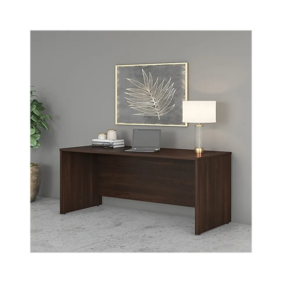 Choose the Bush Business Furniture Studio C 72″W office desk for a durable design that works hard for years with a fresh finish that looks great anywhere. A thick surface, an extended modesty panel, and clean lines convey a classic look that’s available in several contemporary or traditional finishes to fit any workspace. The thermally fused laminate finish, durable edge banding, and sturdy end panels resist scratches, stains, and dents while standing up to the rigors of a 40-plus hour work week. Keep pesky computer cords out of your way with an integrated cable management system for an organized work surface. This computer desk is backed by a 10-year manufacturer’s warranty and meets ANSI/BIFMA quality test standards for safety and performance. See the full collection for coordinating items available to make your office your own with Studio C. American made with U.S. and imported parts.