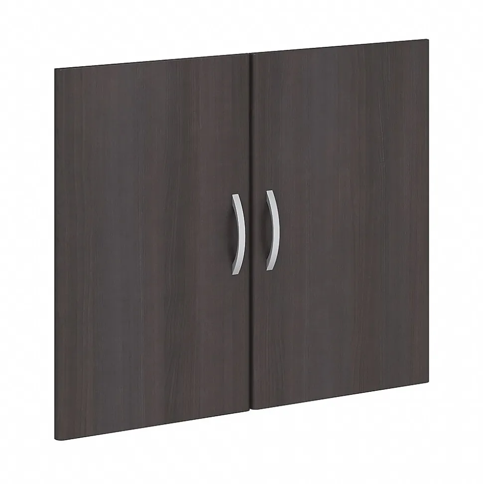Conceal your office supplies and add an eye-catching touch to your workspace with the Bush Business Furniture Studio C Bookcase Door Kit. With attractive Brushed Nickel hardware, the Door Kit attaches to your Studio C Bookcase (sold separately) to cover the lower shelves. Self-closing Euro-style hinges make for an easy open and shut. White and Storm Gray finish options create a contemporary look perfect for the workspaces of today. The durable Bookcase Door Kit design includes a scratch-resistant thermally fused laminate finish to withstand the rigors of years of everyday use. Studio C comes with a 10 Year Warranty and meets ANSI/BIFMA quality test standards. See the full collection of coordinating items available and make your office your own with Studio C. American made with U.S. and imported parts.