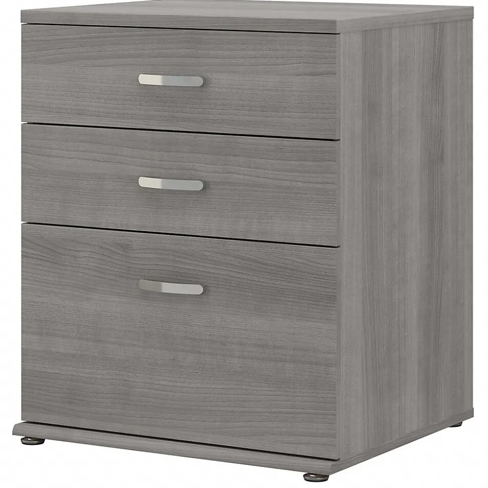 The Bush Business Furniture Universal floor storage cabinet with drawers features a commercial-quality design and contemporary styling that suits virtually any home or professional environment. Organize your office, break room, garage, laundry room, or any other work or living space with an accent cabinet that’s built to last and boasts plenty of practical storage capacity. Drawers can hold up to 30 lbs. each and open on smooth full-extension ball bearing slides for an effortless reach to office supplies, tools, household items, and more. The spacious bottom drawer easily accommodates larger materials and equipment. The floor cabinet’s base includes adjustable levelers to compensate for uneven surfaces. This three-drawer cabinet has been tested to meet ANSI/BIFMA standards for safety and performance and is backed by a 10-year warranty. See the full collection for coordinating items available.