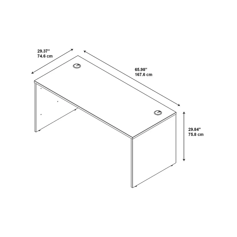 With the Bush Business Furniture Westfield 66W Office Desk, you’ll enjoy classic looks, ample workspace and convenient wire management. Set up your laptop, phone and more on the roomy surface while feeding cables through wire management grommets in the desktop and modesty panel for a clutter-free work area. Rely on the rugged thermally fused laminate finish, heavy-duty construction, tough edge banding and thick end panels for continued commercial-grade quality. Add a Return (sold separately) on the left or right side to form an L Shaped Desk, or complete your office with matching storage products and convenient accessories. Westfield offers endless layout options, expansion opportunities and 7 finishes. This affordable office furniture withstands the rigors of a 40-plus hour work week and comes with a 10 Year Warranty. American made with U.S. and imported parts.