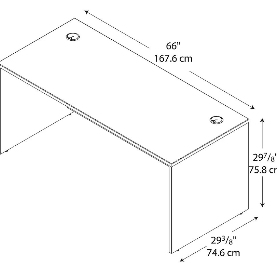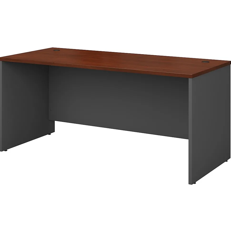 With the Bush Business Furniture Westfield 66W Office Desk, you’ll enjoy classic looks, ample workspace and convenient wire management. Set up your laptop, phone and more on the roomy surface while feeding cables through wire management grommets in the desktop and modesty panel for a clutter-free work area. Rely on the rugged thermally fused laminate finish, heavy-duty construction, tough edge banding and thick end panels for continued commercial-grade quality. Add a Return (sold separately) on the left or right side to form an L Shaped Desk, or complete your office with matching storage products and convenient accessories. Westfield offers endless layout options, expansion opportunities and 7 finishes. This affordable office furniture withstands the rigors of a 40-plus hour work week and comes with a 10 Year Warranty. American made with U.S. and imported parts.