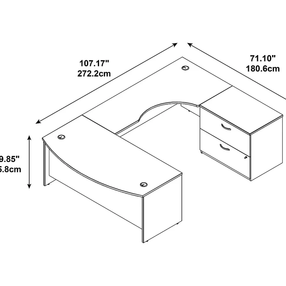 - Bundle Includes: 72W RH Corner Module, 72W Bowfront Desk, and 36W 2-Drawer Lateral File