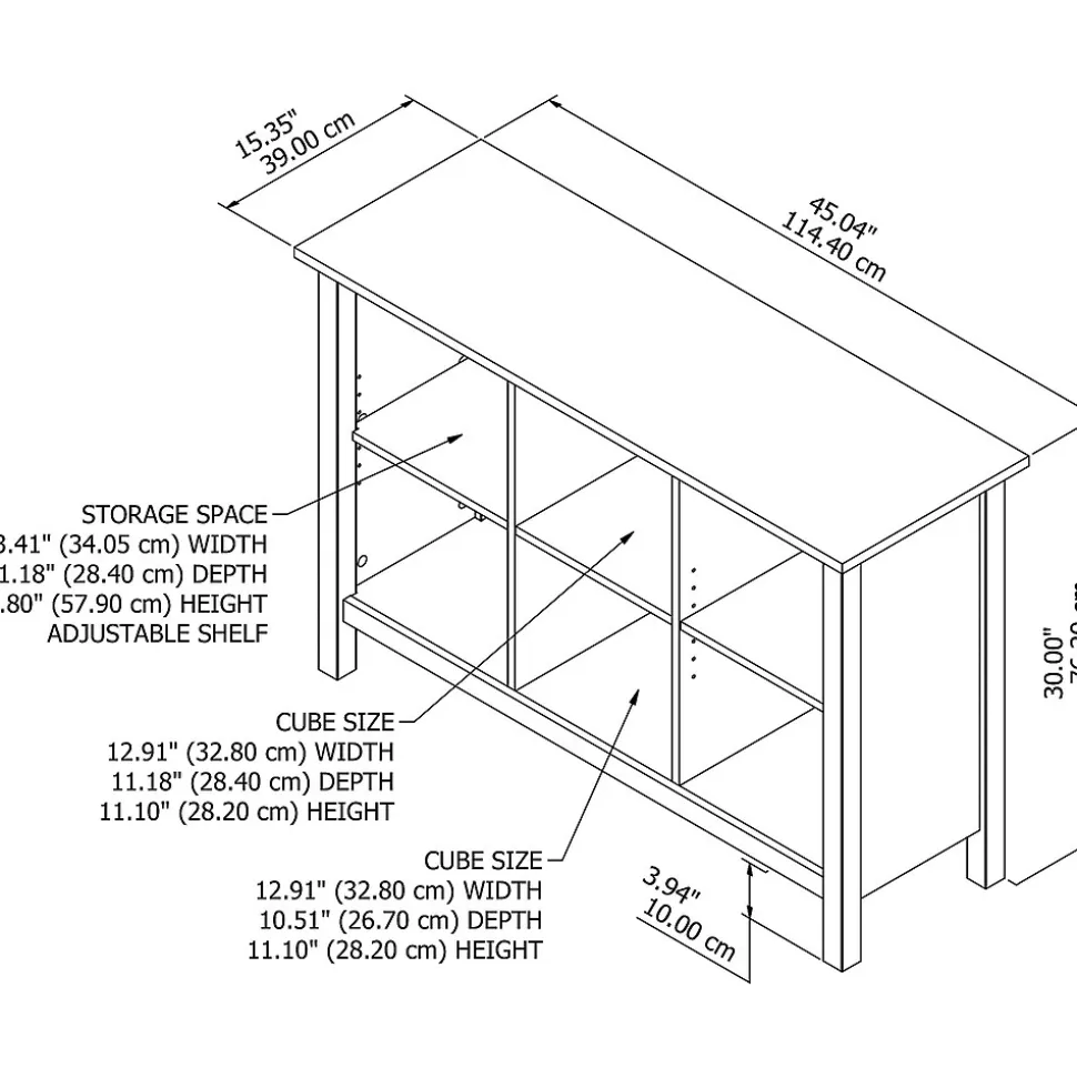 - Assembled Dimensions: 45″W x 15 1/3″D x 30″H
