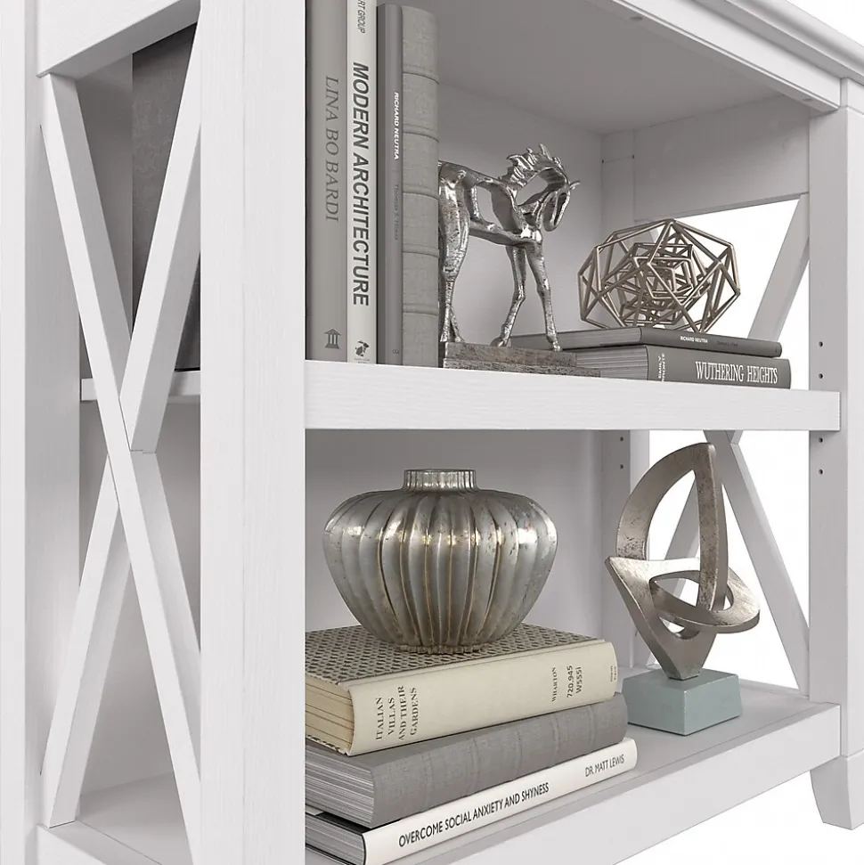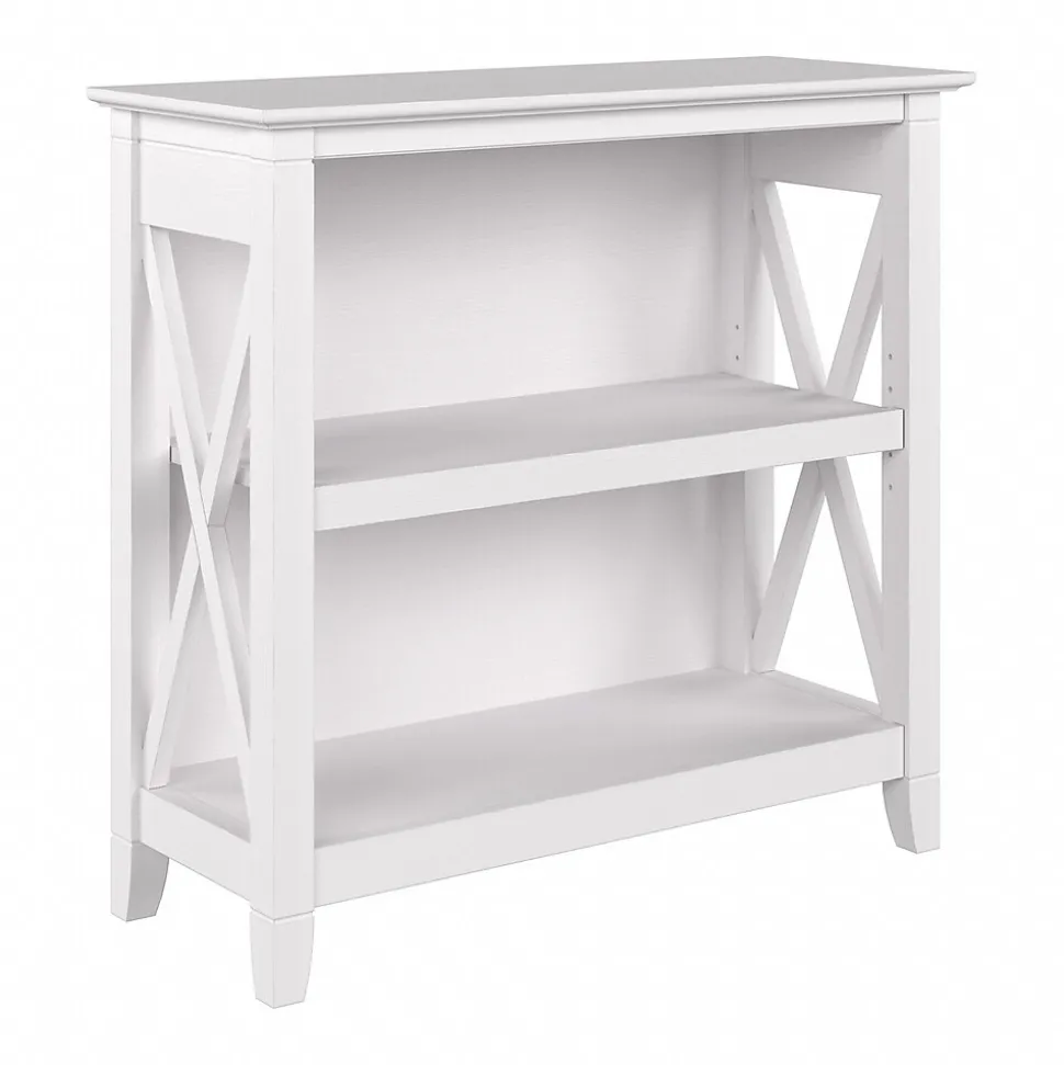 The Bush Furniture Key West small two-shelf bookcase offers a practical storage and display solution that gives your home a touch of casual style. This small bookshelf features a compact, versatile design that makes it a perfect choice for use in a home office, living room, entryway, or virtually any other residential space. One fixed shelf and one adjustable shelf accommodate books, reference materials, and decorations of various sizes. Each shelf supports up to 35 lbs., so you can store and display larger items with confidence. A post leg design and X-pattern accents convey a casual appearance that works well with cottage, coastal, and modern farmhouse style. This small bookcase has been tested to meet ANSI/SOHO quality standards for safety and performance and is backed by the Bush Furniture 1-year manufacturer warranty. See the full collection for coordinating items available.