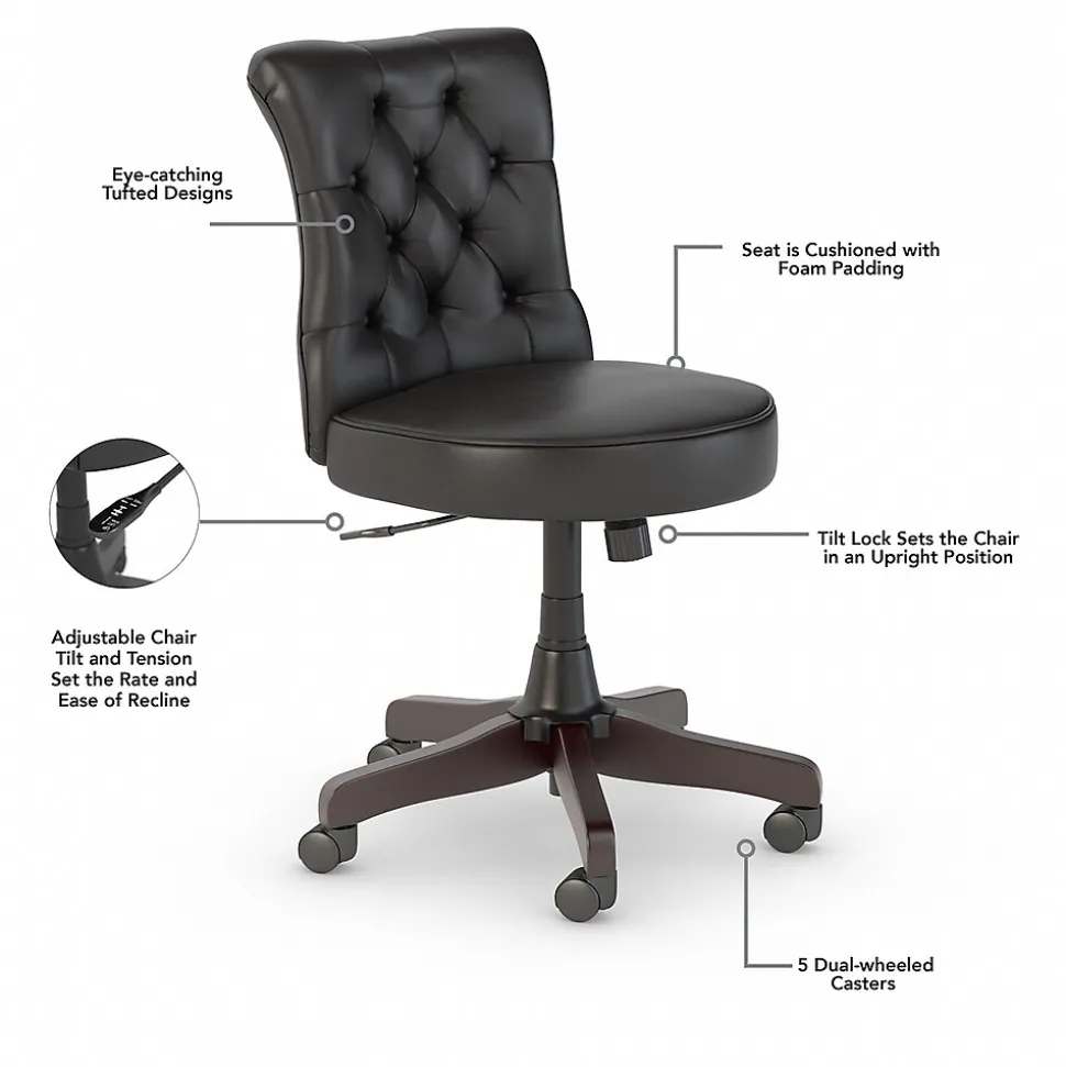 - Office Chair’s casual button tufted upholstery provides a perfect complement to the Desk’s relaxed style