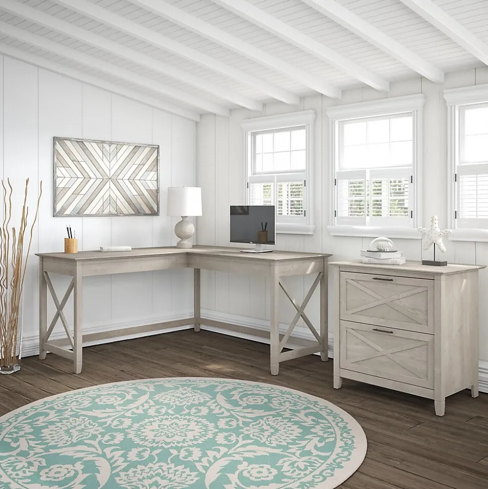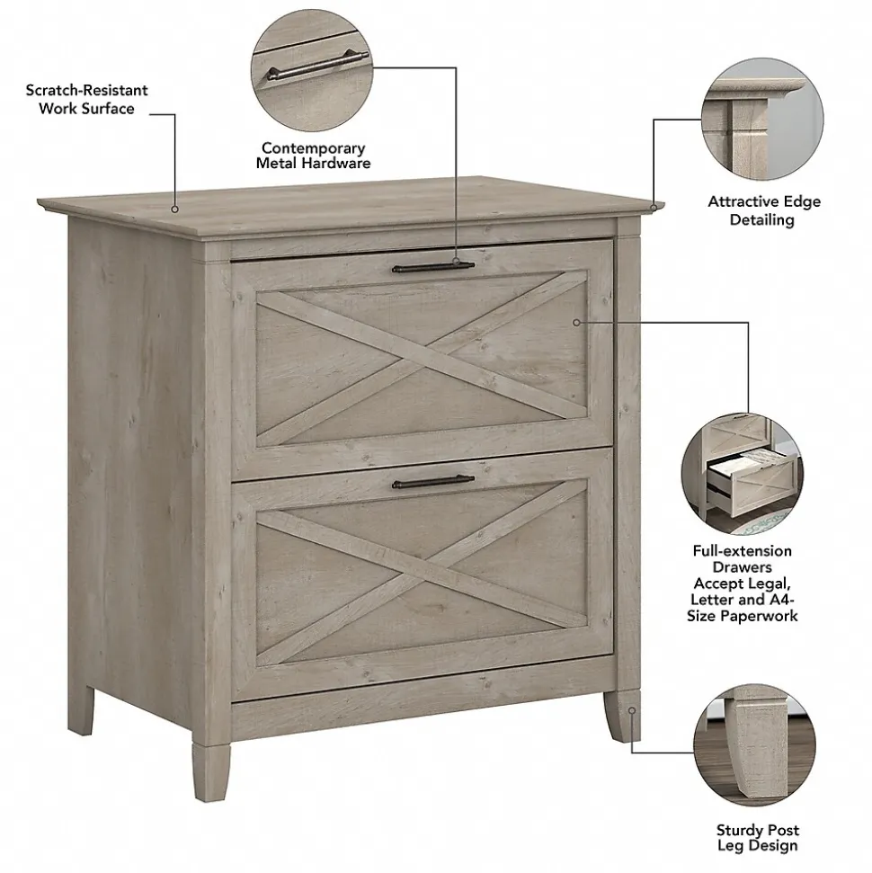 The Bush Furniture Key West Collection’s Lateral File provides a casual storage component that works in any room. The unique X pattern accent on the drawer panels has a relaxed style with sturdy and attractive post leg design. Key West features a natural reclaimed wood with an authentic Washed Gray finish with Aged Bronze hardware accents. Two file drawers accommodate letter and legal size files and built with full extension ball bearing slides. This component features a finished back so it can be placed anywhere in the room. Enjoy easy access to your folders, plus the Lateral File matches the height of any Key West Desk. Meets ANSI/SOHO standards for safety and performance and is backed by the Bush Furniture 1 Year Manufacturer’s Warranty.