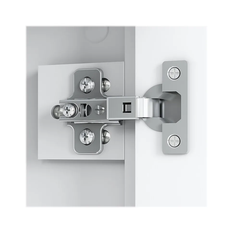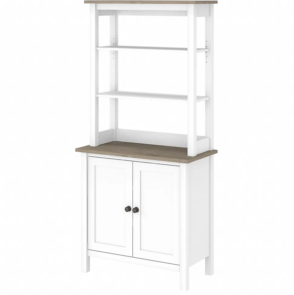 The Bush Furniture Mayfield five-shelf bookcase with doors combines casual looks with a practical design that makes organizing your work or living space easy. Maintain an organized work or living space with storage that suits your casual home. Highlighted by its relaxed modern farmhouse style, the Bush Furniture Mayfield five-shelf bookcase with doors is a perfect fit for virtually any residential setting. A two-door storage cabinet with one adjustable shelf conceals bulky reference materials you want kept in order but out of sight. Doors close on smooth euro-style hinges for easy access to contents. The top of the bookcase offers an open storage area with one fixed shelf for stability and one shelf that can be raised or lowered to display items of various sizes. Each shelf supports up to 25 pounds, so you can store your collection of paperback and hardcover books or show off larger decorations with confidence. This five-tier bookcase with doors is tested to meet ANSI/SOHO standards for safety and performance and is backed by a 1-year warranty.