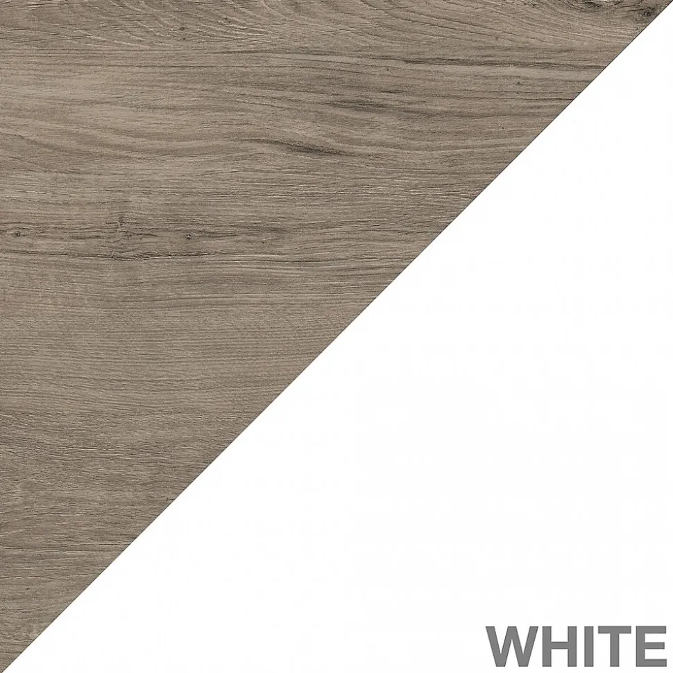 - Standard bookcase is made of laminate over engineered wood in a pure white/shiplap gray finish