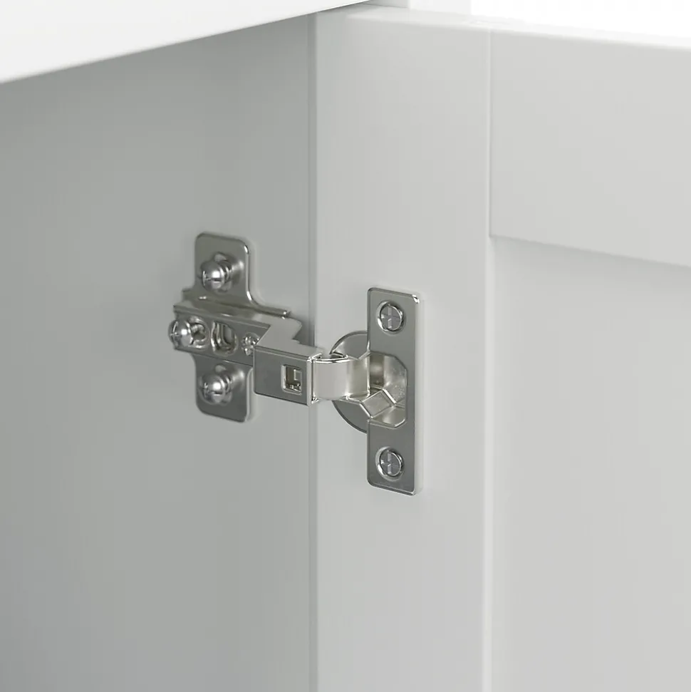 - Made of laminate over engineered wood with tumbled pewter hardware and comes in shiplap gray/pure white finish