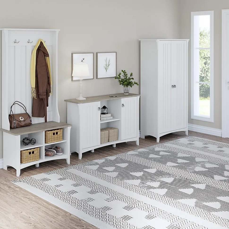 Complement the casual feel of your home with a storage solution designed for your convenience and comfort. The Bush Furniture Salinas accent storage cabinet with doors blends unique details and adjustable features for use in a variety of spaces. Complete your home office, hallway, entryway, or living room with this casual two-door cabinet featuring open and concealed storage. Place your favorite pictures, plants, or a lamp on the spacious top while showing off additional decorations in the open cubby space below. Inspired by timeless Mission style, the doors with vertical wood accents and elegant tumbled pewter hardware conceal any items you don’t want out in the open. This storage cabinet contains two adjustable shelves, one behind each door. The storage cabinet with doors is tested to meet ANSI/SOHO quality standards for safety and performance and is backed by a 1-year manufacturer limited warranty.