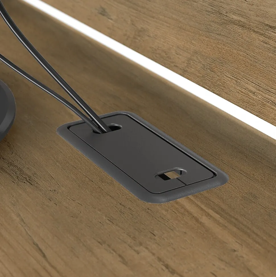 - Desktop includes a wire management system to keep your work area free from cords and cables