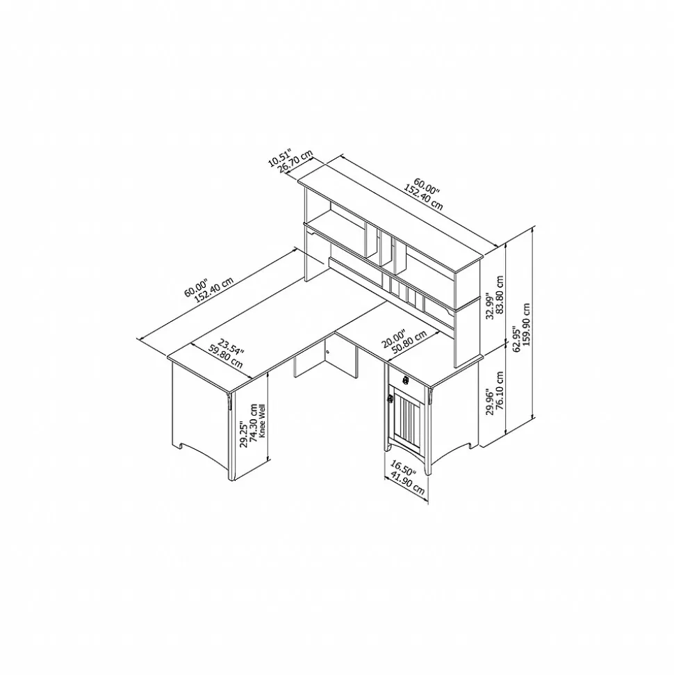 The Bush Furniture Salinas 60W L Shaped Desk with Hutch offers a comfortable and functional personal workspace inspired by timeless Mission styling. You’ll love all the space you have to multitask on the L Shaped surface, designed to save space in your home by fitting into a corner. Store writing utensils and small office supplies in the convenient box drawer and keep larger items in a storage cabinet that features an adjustable shelf. The 60W Hutch attaches to either side of the L Desk to add plenty of storage for books, photos, decorations and more. Two large open cubby areas on either side hold bigger items, and a pair of smaller spaces in the middle are perfect for storing important documents and work-in-progress. The cottage style corner desk with storage is tested to meet ANSI/SOHO quality standards for safety and performance and is backed by a 1 year manufacturer’s warranty.