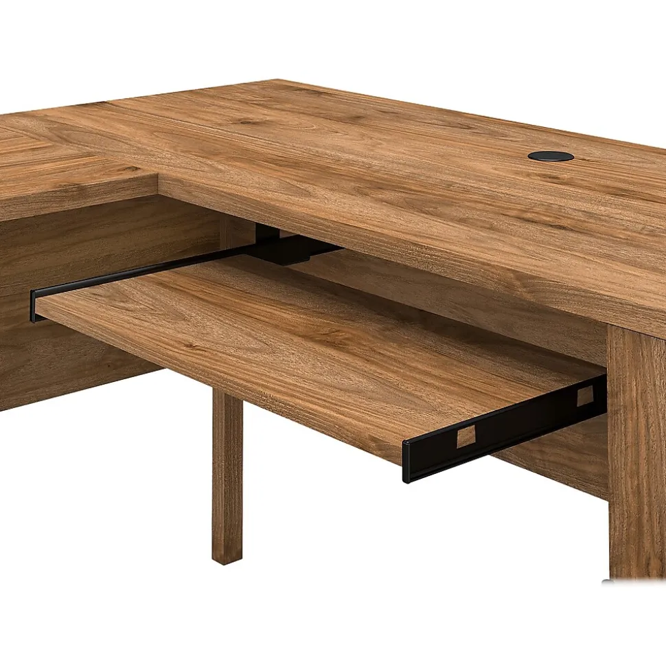 - Bundle includes: 60″W L-shaped desk with storage, 60″W desk hutch