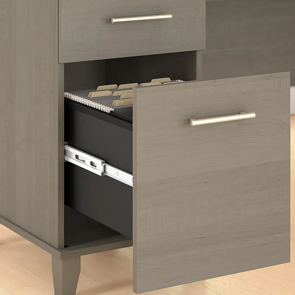 An expansive work surface and built-in storage make the Bush Furniture Somerset 72W Office Desk with Drawers a perfect choice for your home office. The spacious desktop offers plenty of room to spread out with a computer and paperwork and includes a wire management grommet to keep cords and cables secure and out of sight. The desk’s file drawer opens on full-extension ball bearing slides for easy access to legal and letter size documents, while a box drawer keeps the office supplies and utensils you need close by. A finished back side allows the desk to look great no matter where it’s positioned in the room. The computer desk can also be used with the Somerset 42W 3 Position Sit to Stand Return (sold separately) to create an ergonomic height adjustable workspace. The Desk with Drawers is tested to meet ANSI/SOHO standards for safety and performance and is backed by a 6 Year Warranty.