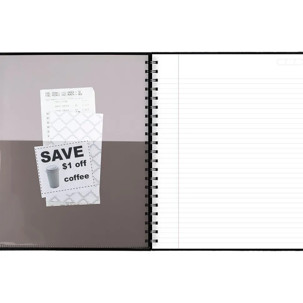 - Poly pocket stores loose sheets. Label page is included to customize the notebook. High quality paper contains a minimum of 30% post-consumer waste recycled material