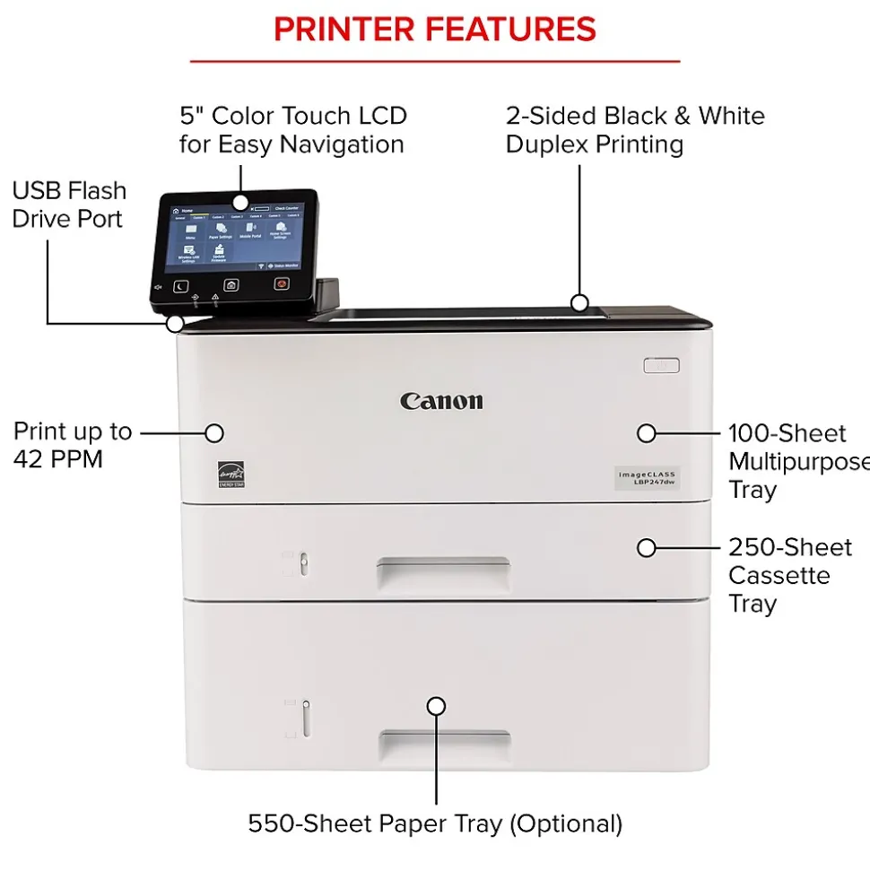 | Printer Type | LBP247DW (Added Touchscreen) |