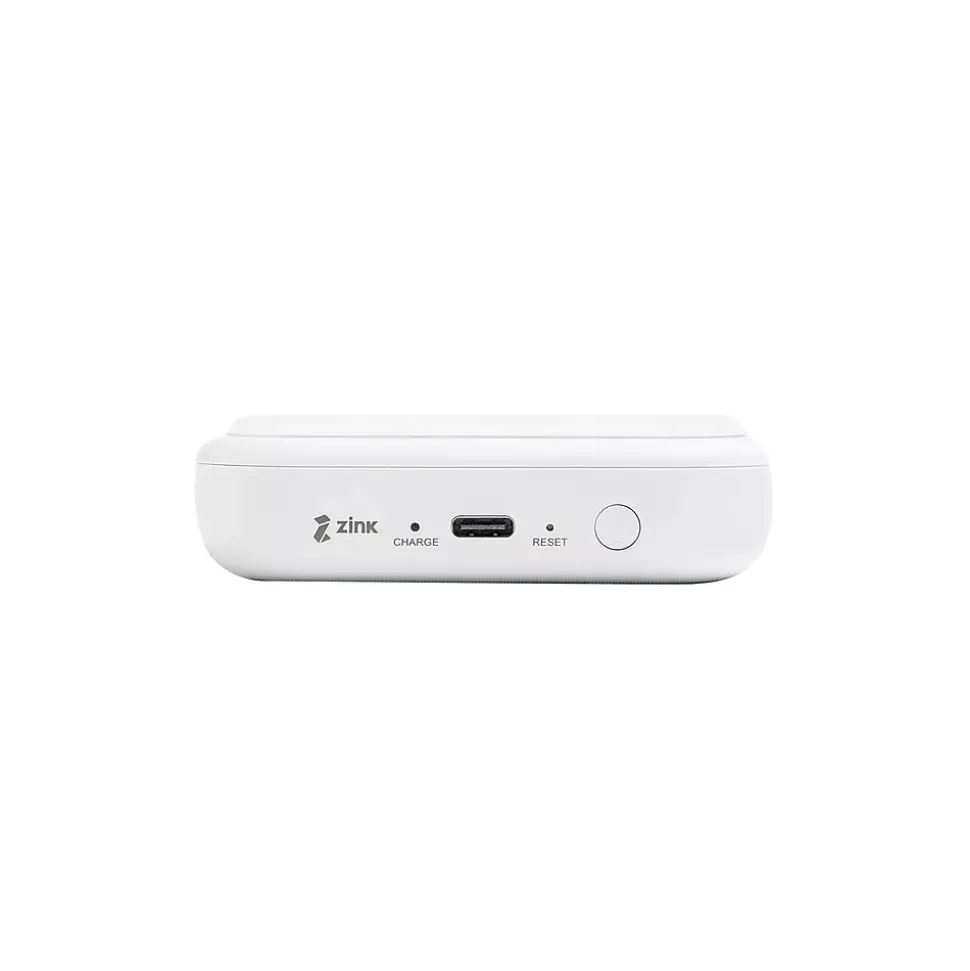 - Printer uses ZINK Zero Ink technology, allowing you to print without ink in a 313 x 512 dpi resolution