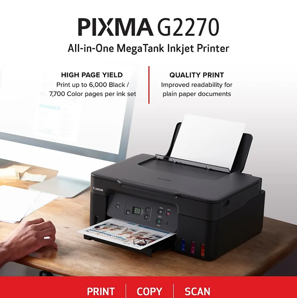 - Software included (Windows/macOS): PIXMA G2270 driver, Easy-PhotoPrint Editor software, PosterArtist Web version
