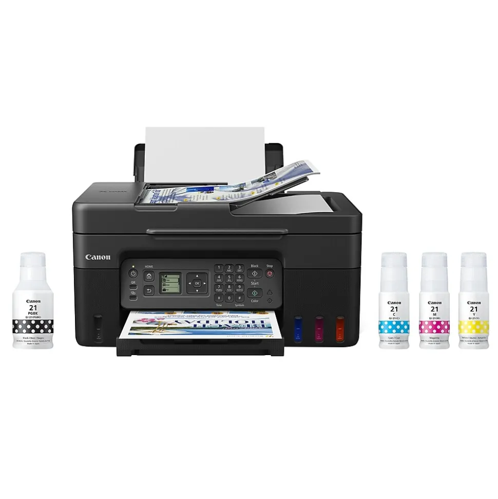| Series or Collection | Printer, power cord, fax modular cable, ink bottles (GI-21 pigment-based black ink, GI-21 dye-based color ink: cyan, magenta, yellow), print heads |