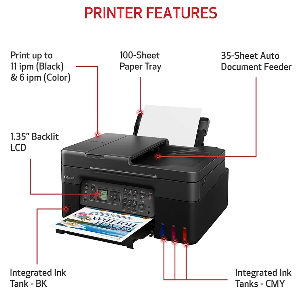 - Multifunction printer with a 35-sheet auto feeder