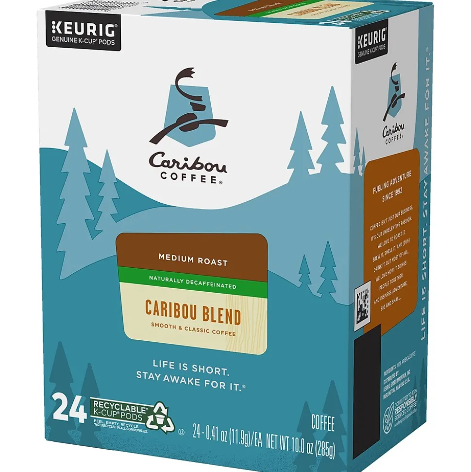 Relax with a hot cup from these coffee pods. Each one contains all-natural chemical-free decaffeinated coffee, making it ideal for keeping your caffeine intake in check, while woodsy, spicy touches balance out the fruity notes of South and Central America. These Caribou Coffee K-Cup Caribou Blend decaffeinated coffee pods offer a clean finish of bittersweet chocolate and hints of berry for a tasty, smooth drink.