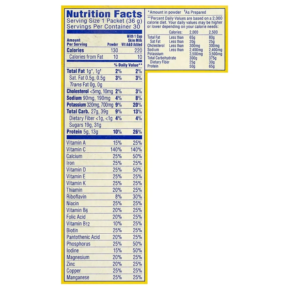 - A 30-count pack of Carnation Breakfast Essentials milk mix in chocolate flavor